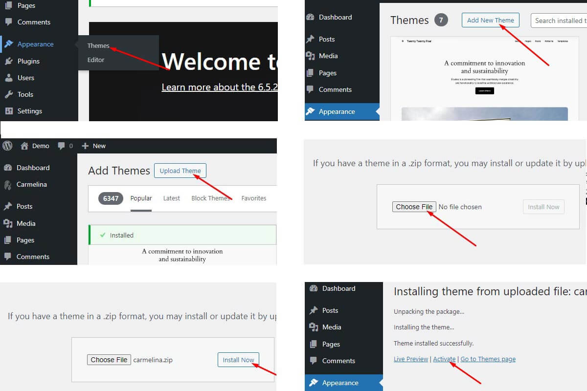 2. Upload theme folder (Unzip theme_name.zip) to wp-content/themes