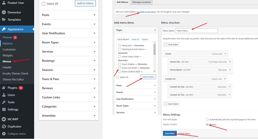 To customize the menu and megamenu please login to wp-admin and navigate to Dashboard -> Appearance -> Menus and follow the following steps: