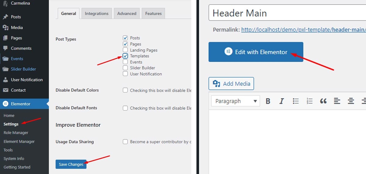Note: Remember checked Elementor support builder for post type "Templates" from Elementors -> Settings -> General