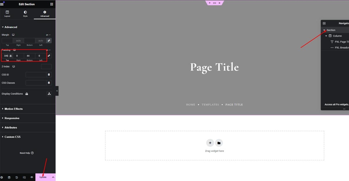 Edit Page Title Layout template