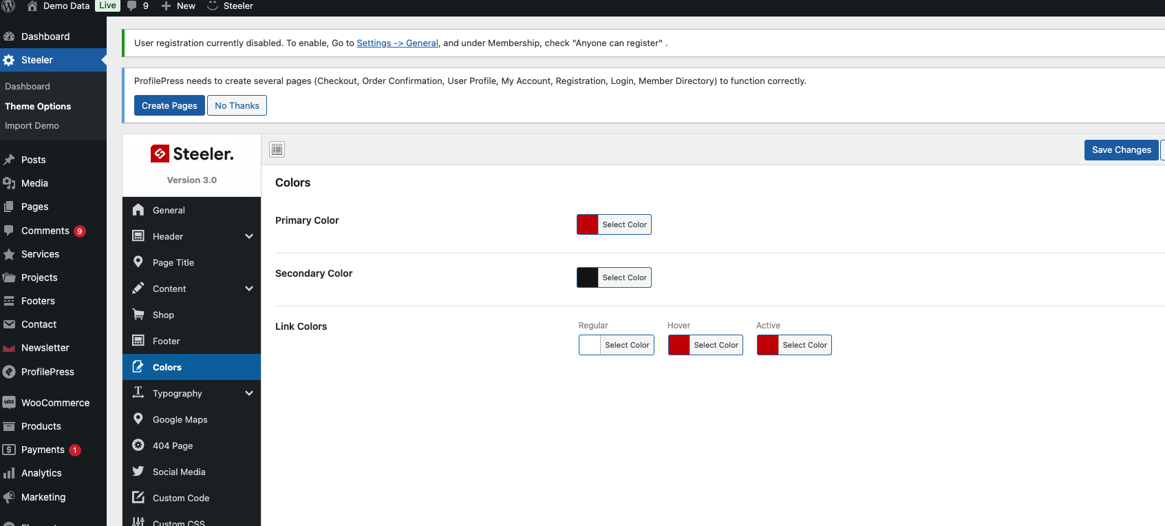 ### Change color in Theme Options