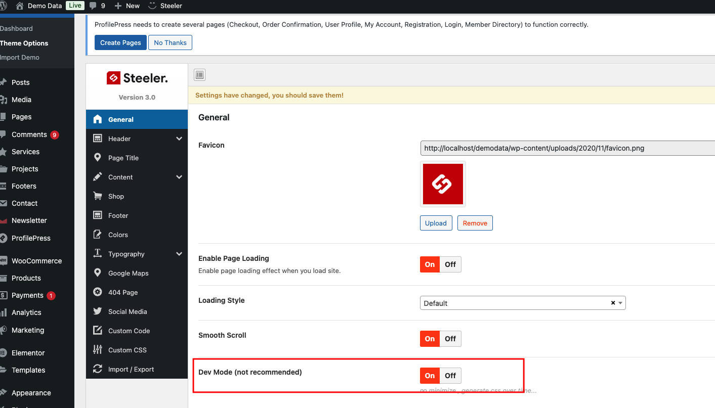 **Note**: After change please turn **OFF** Theme Option / General / **Dev Mode** to not slow your website as your site will continuously regenerate CSS files after each reload.