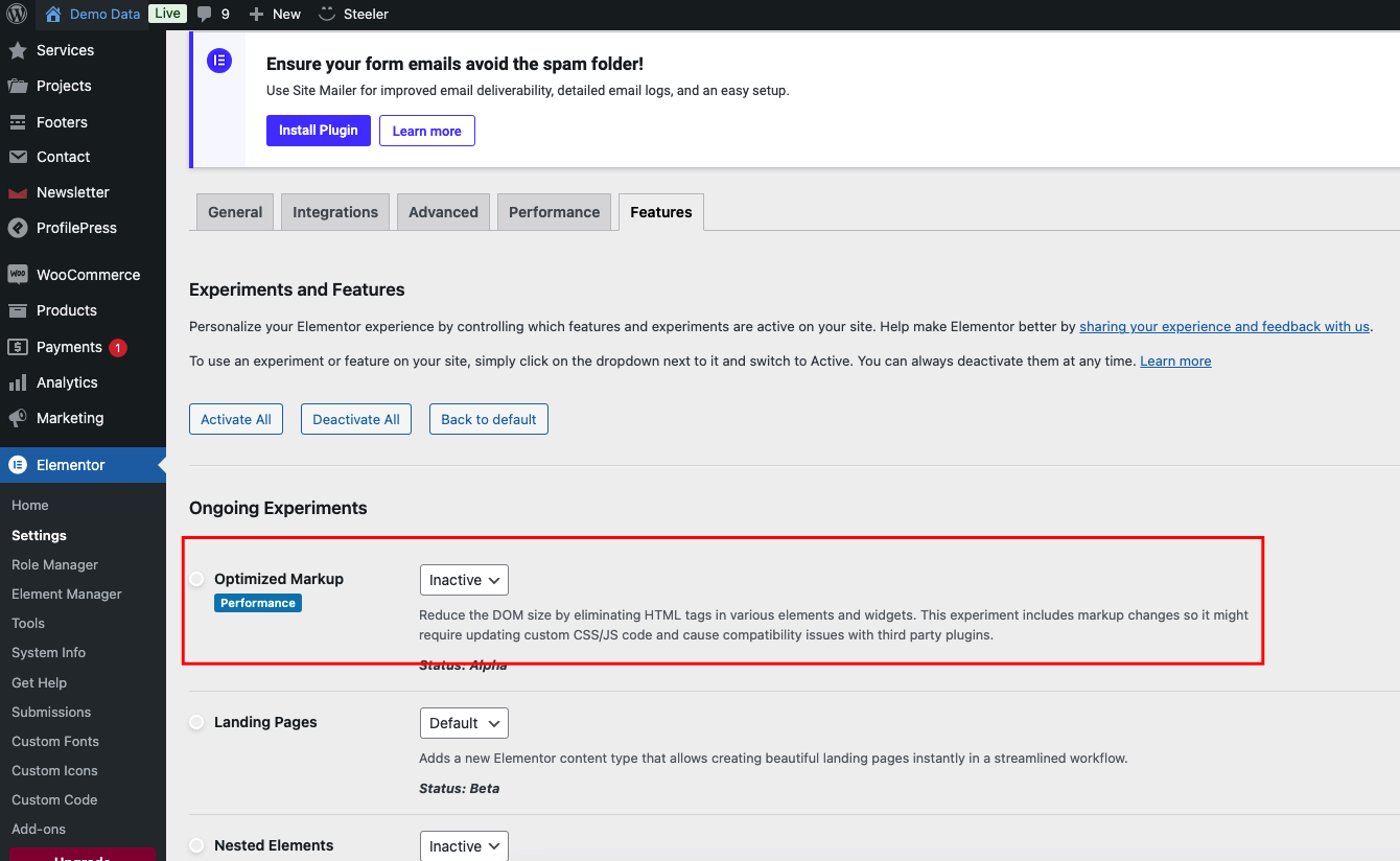 After import you get issue 404 when you click to Home 2 please go Elementor / Settings / Features and Off this setting then reload: