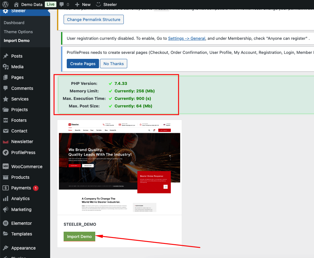 *Notice: Make sure to activate required plugins prior to import a demo.*