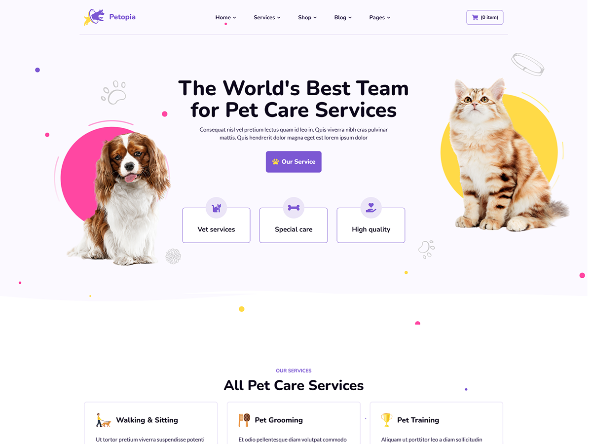 This guide provides instructions for installation, help on getting started and extensive documentation of features. It is recommended you read it thoroughly to fully leverage the theme's capabilities. We hope you enjoy building your website with Petopia theme.