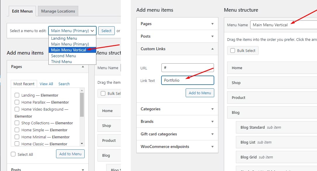 To customize the menu and megamenu please login to wp-admin and navigate to Dashboard -> Appearance -> Menus and follow the following steps:
