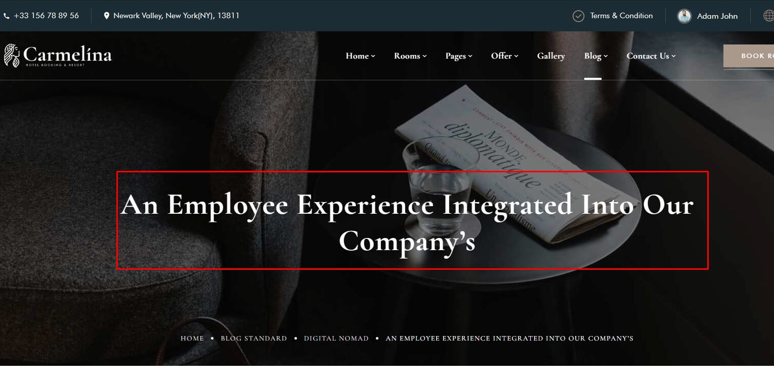 The post title will be displayed in the page title area: